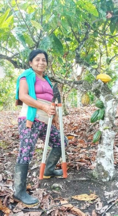 The cooperative we mainly work with in San Martin buys cacao from 435 producers. 224 of the registered organic producers are women. The average hectarage is 2 per producer.