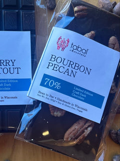 This bourbon bar is infused with amazing bourbon flavor. Be sure to take a whiff of the chocolate just as you open it up, as it will help get you in the mood. We then top it off with amazing, crunchy, salty pecans that will certainly put a jig in your step.