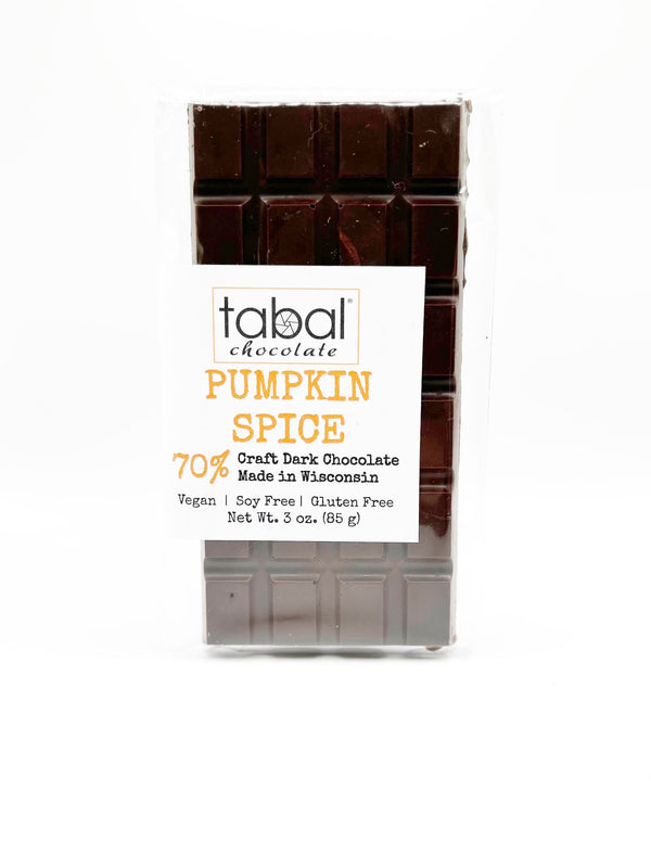 Organic cacao, organic cane sugar, organic cacao butter, organic vanilla bean, pumpkin spice, pumpkin oil